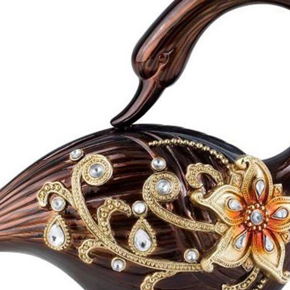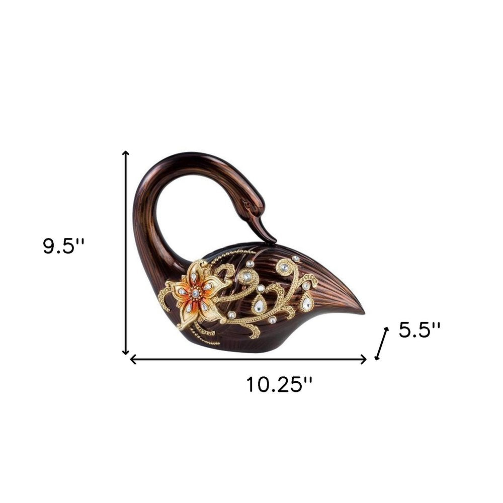 Add an air of fashion to your room and rejuvenate the space with this 10" bronze and gold polyresin dove statue sculpture. This bronze and gold hued piece represents high quality, expertly made from high grade polyresin. This statue makes a great tabletop accent for your coffee table, counter, bookshelf, mantle, or even dining table. A perfect decorative addition for anyone who loves a stylish look and feel. Use this piece as bookshelf decor, on your desk, coffee table, or anywhere in your home. 9.5" H x 5.5" W x 10.25" D