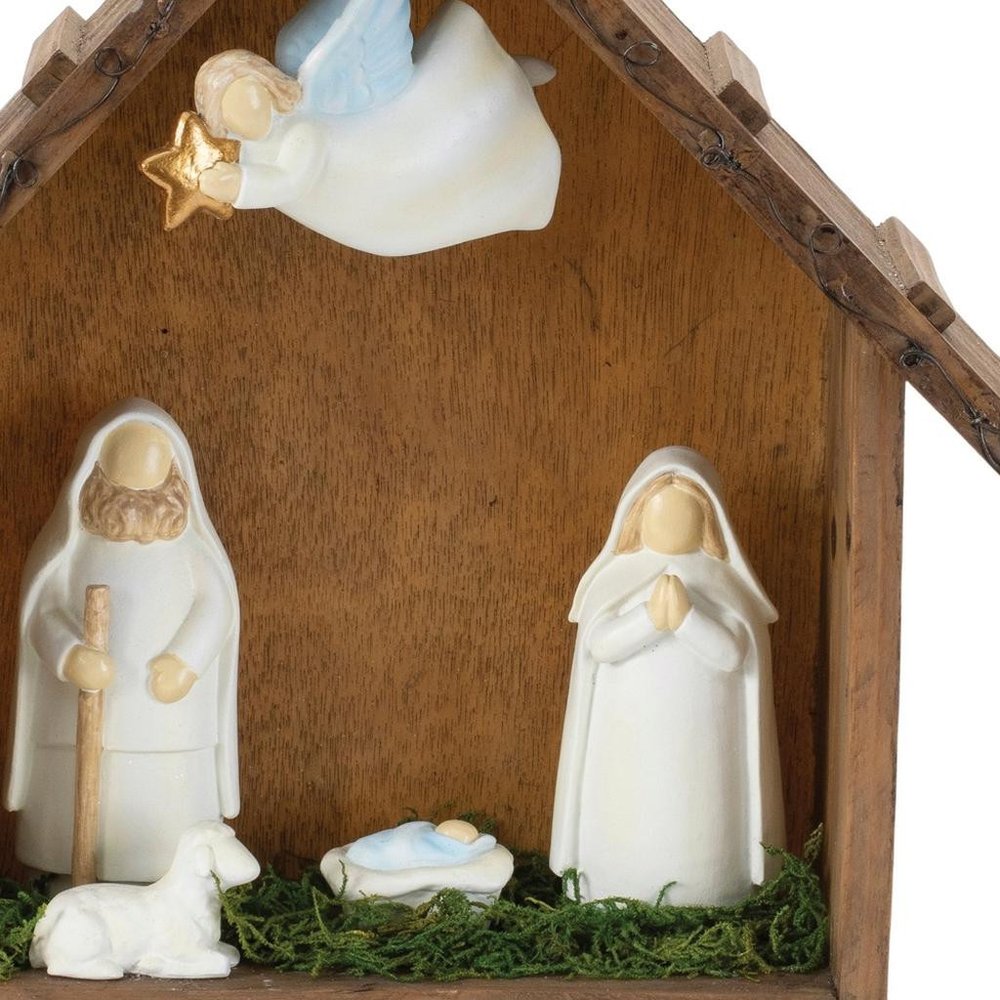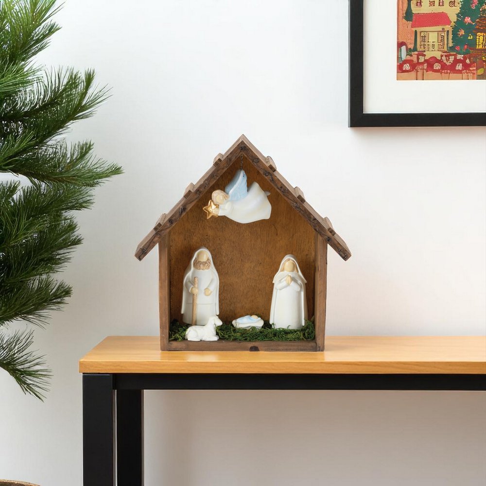 This 10-inch brown white and green resin tabletop sculpture will add a beautiful decorative accent to your decor. A perfect decorative addition for anyone who loves a stylish look and feel. Machine-made for precision and quality, this unique piece highlights an artistic flair that enhances any space. Its captivating design serves as a conversation starter, drawing attention and admiration from guests. Crafted from durable resin, it combines aesthetic appeal with lasting durability, ensuring it remains a cherished part of your home for years to come. Perfect for various spiritual and religious themes, it brings a touch of elegance to any tabletop setting. 9.75-inch h x 10.00-inch w x 3.00-inch d.