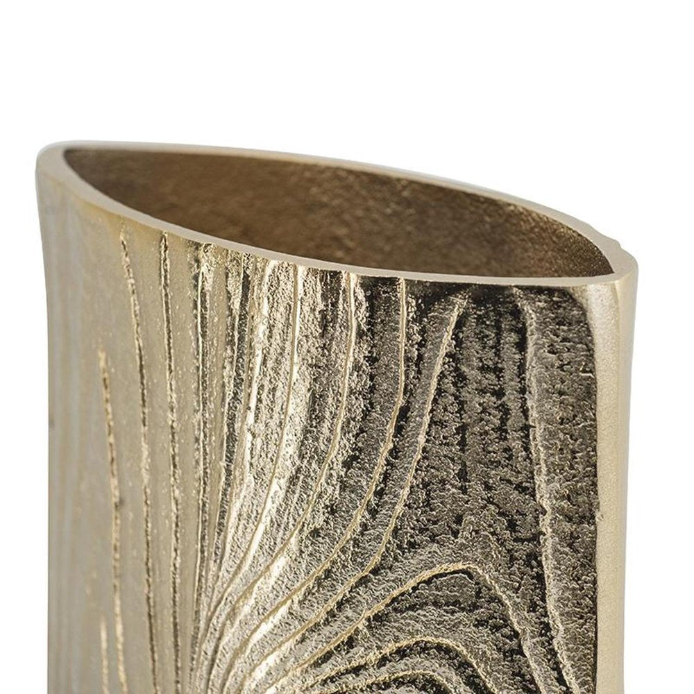 10" Gold Aluminum Oval Faux Wood Table Vase