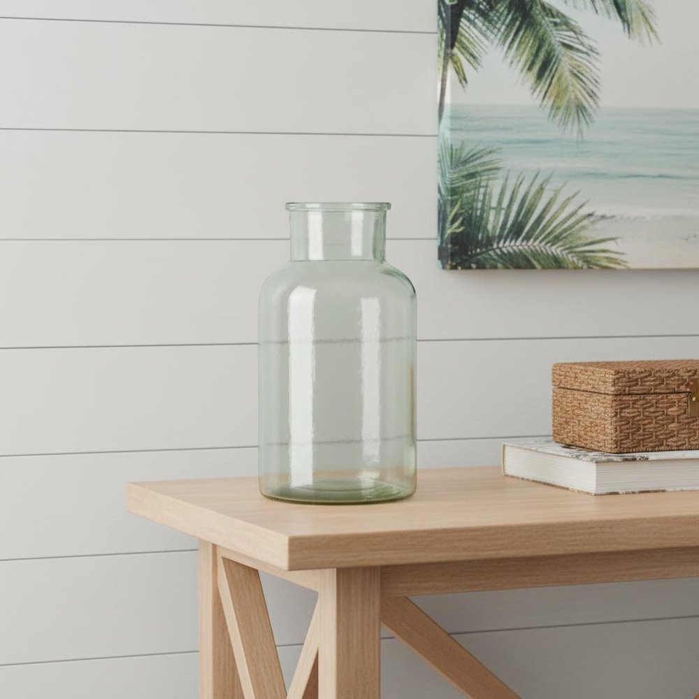 Get ready to accent your space in style with this 10-inch green glass round table vase. This elegant table vase brings a touch of sophistication to any room it graces. Crafted from high-quality glass, its sleek design beautifully reflects light, creating a captivating display. The round shape adds a soft and inviting element, making it ideal for a variety of floral arrangements or as a standalone decorative piece. Its vibrant green hue adds a refreshing pop of color, enhancing your home decor effortlessly. Perfect for dining tables, side tables, or as a centerpiece, it elevates the ambiance of your living area with ease. 10.25-inch h x 5.50-inch w x 5.50-inch d.