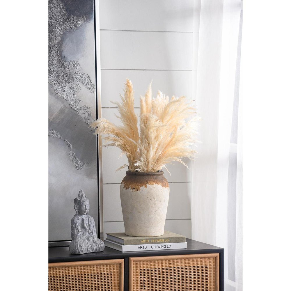 With or without flowers, this 10-inch brown ceramic round jug vase makes a great gift or decorative accent for your space. The unique coat/paint distressing adds an artistic touch that enhances its rustic charm. Hand-painted craftsmanship ensures that each piece is truly one-of-a-kind, showcasing intricate details and personal flair. The round shape allows for versatile styling options, making it a perfect fit for various decor themes. This jug vase not only serves as a functional item but also as a statement piece that elevates your home’s aesthetic effortlessly. Ideal for showcasing fresh blooms or simply standing alone. 9.80-inch h x 18.50-inch w x 7.10-inch d.