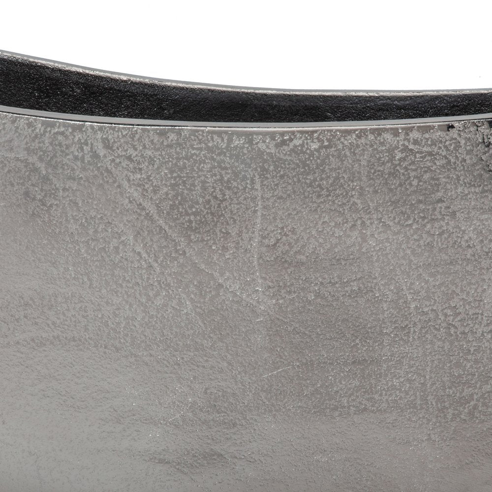 The 10-inch nickel aluminum table vase adds a touch of contemporary elegance to your decor. Crafted from durable cast aluminum, this vase features a striking nickel finish that complements any room. Its purposeful distressing type gives it a unique aesthetic, showcasing the charm of distressed metal. Designed with a modern style in mind, it serves as a stylish centerpiece for dining tables or sideboards. The versatile table vase is perfect for showcasing fresh flowers or decorative branches, enhancing your home's ambiance effortlessly. With its sleek design and high-quality materials, this vase is an ideal addition for those looking to elevate their interior design while maintaining a chic, modern vibe. 9.5-inch h x 17.2-inch w x 4-inch d.