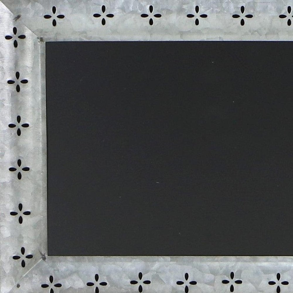 The 10-inch x 14-inch gray floral metal hanging chalkboard is the perfect decorative accessory for your home. Handmade with care, this chalkboard is framed with galvanized metal and comes with rope for hanging to give an overall rustic and artsy look to your space. Personalize your space with hand written messages, lists, or notes. This hanging wall decor will instantly liven things up and bring color and dimension to your walls. 9.50-inch h x 14.25-inch w x 0.50-inch d.