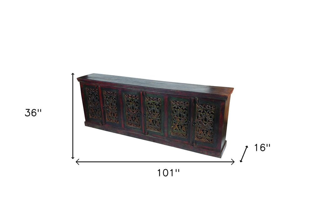 101" Brown and Green Solid Wood Buffet Table with Six Doors