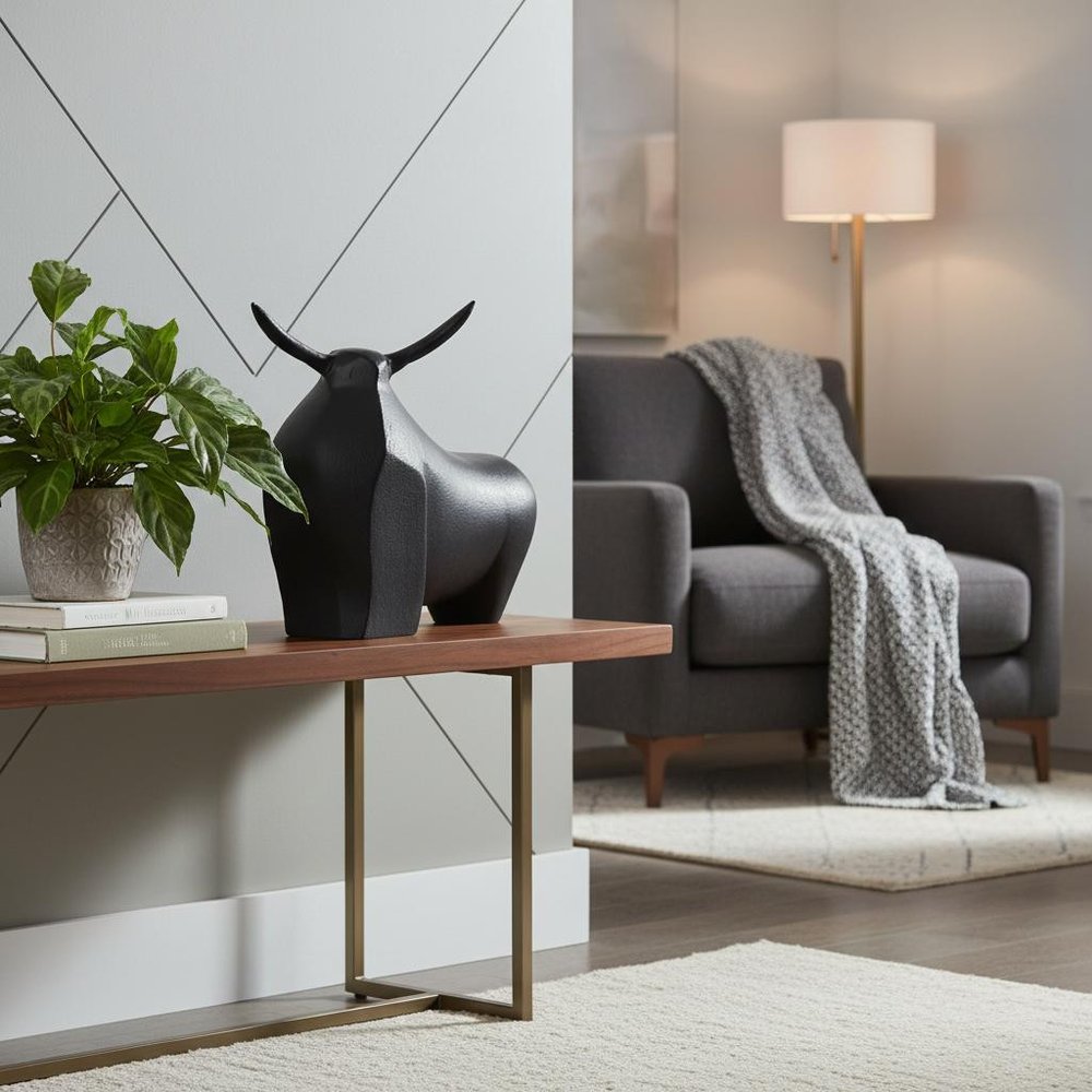 11" Black Aluminum Bull Abstract Tabletop Sculpture