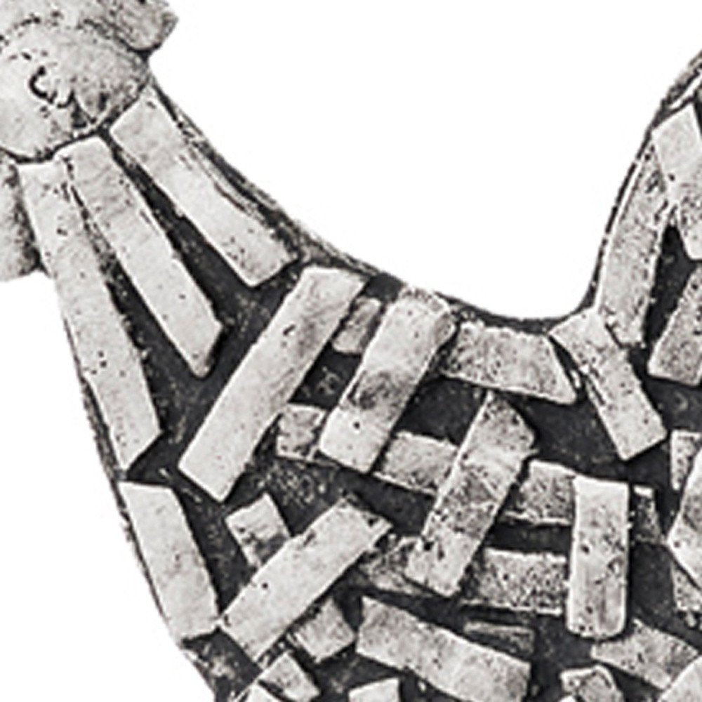 This handsome tabletop sculpture exudes transitional style and is crafted from premium aluminum, showcasing a captivating blend of black and silver hues. With its sleek design and intricate detailing, this piece effortlessly elevates any space with a touch of sophistication. Ideal for those seeking a modern decorative accent that adds a contemporary flair to their home decor. 10.5-inch H x 4-inch W x 9.5-inch D
