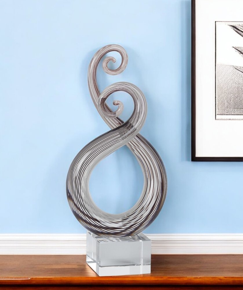 Bring some sizzle to your space with this eye-catching 11-inch clear and brown murano glass modern abstract tabletop sculpture. This charming decorative accent is expertly made of high grade murano glass in a clear and brown coloration. Great to use on its own or mix with other decorations for the perfect look. 10.5-inch H x 2.5-inch W x 4-inch D