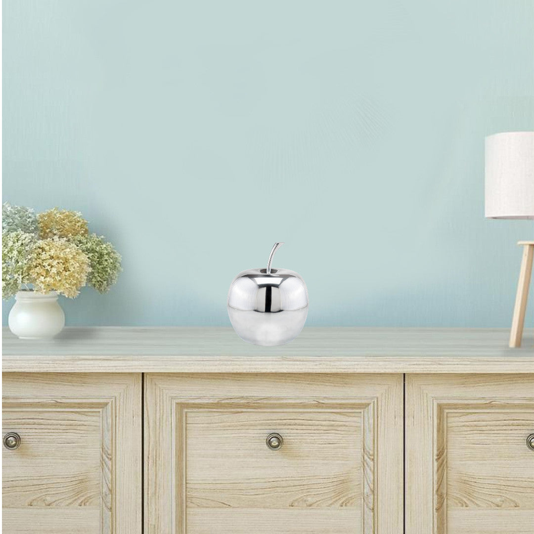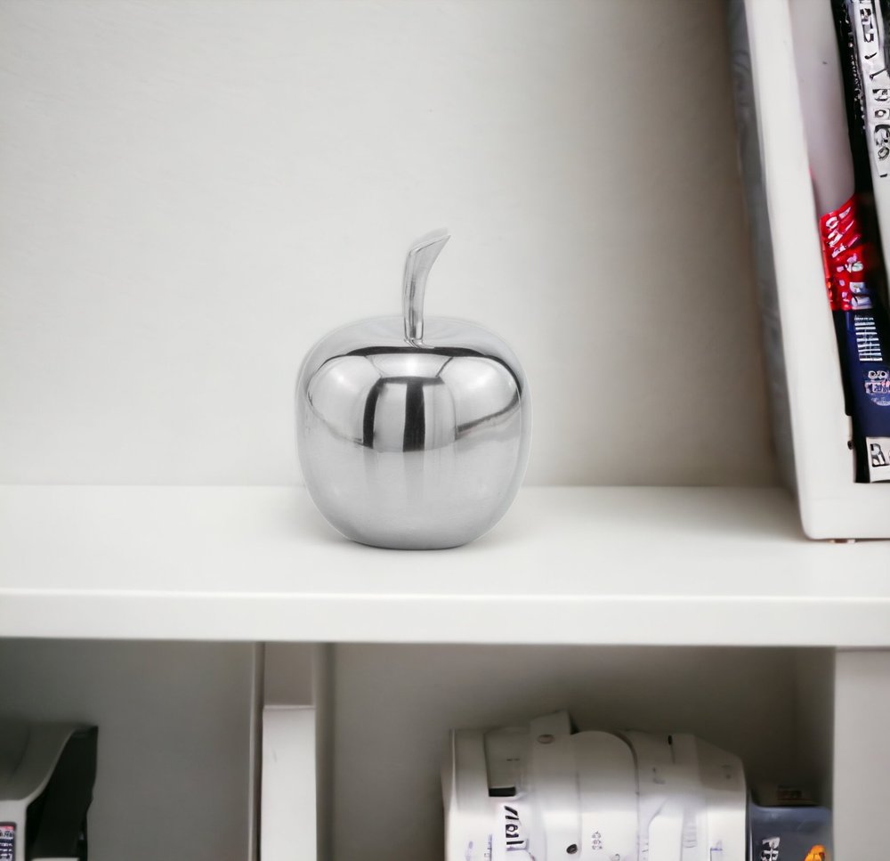 This 11-inch red and silver aluminum decorative apple will add a beautiful decorative accent to your decor. This shiny red enamel coated apple is just what the doctor ordered. Made of high quality aluminum covered in red and featuring a bare aluminum stem, this apple will add some visual interest and delight to your kitchen, dining room, or living room. 11-inch H x 5.5-inch W x 5.5-inch D