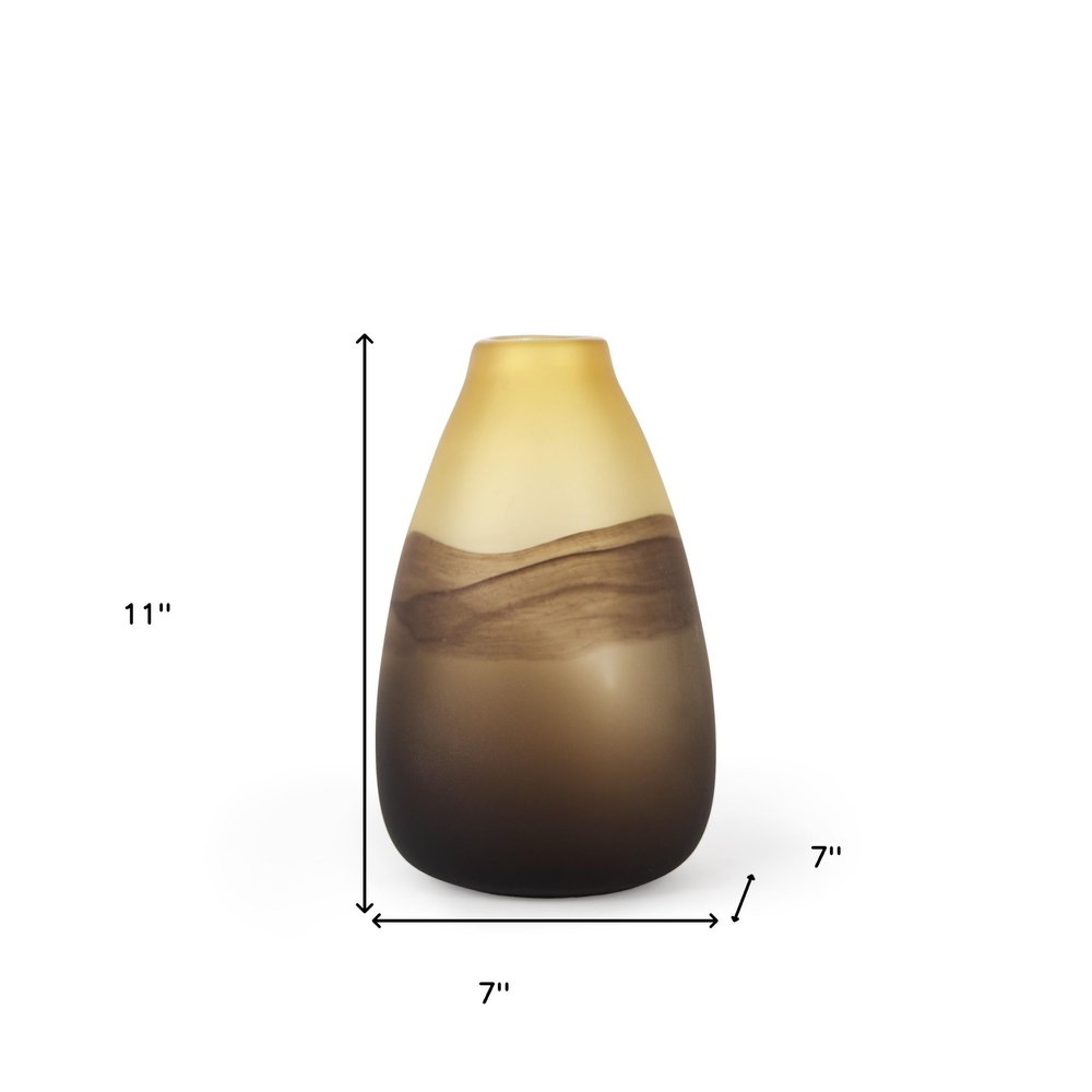 Add a touch of modern elegance to your living space with this 11-inch yellow abstract cylinder crystal glass table vase. The sleek cylindrical shape and vibrant yellow color make it a striking piece to adorn any table. Crafted from high-quality crystal glass, this vase exudes a sense of contemporary style and sophistication. Perfect for displaying fresh flowers or simply as a standalone decor item, this vase will effortlessly elevate the aesthetic of your home. Its unique abstract design adds a touch of artistic flair, making it a standout accent piece in any room. Enhance your interior decor with this eye-catching table vase that combines form and function beautifully. 11-inch h x 7-inch w x 7-inch d.