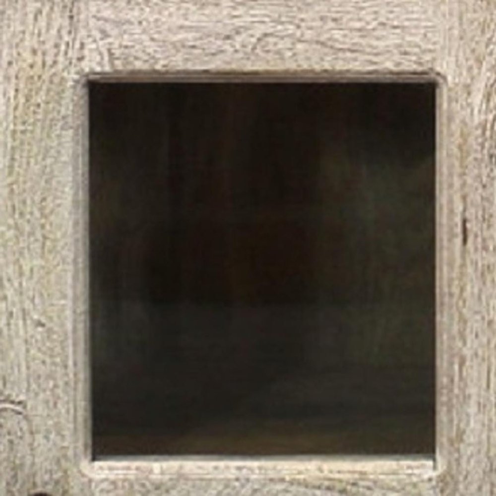 Glass doors give this cabinet a luminous and unique designer touch. Storage vessels don't have to be unsightly. Increase your storage space and the fashion quotient of your room with this hard wearing, versatile, and good looking cabinet. Crafted from solid wood, this sideboard features an antiqued white finish that adds to its traditional charm. The wood scoring and rub through detailing enhance its vintage appeal, while the black hardware finish creates a stunning contrast, ensuring it stands out beautifully in any setting. 36-inch h x 118-inch w x 16-inch d.