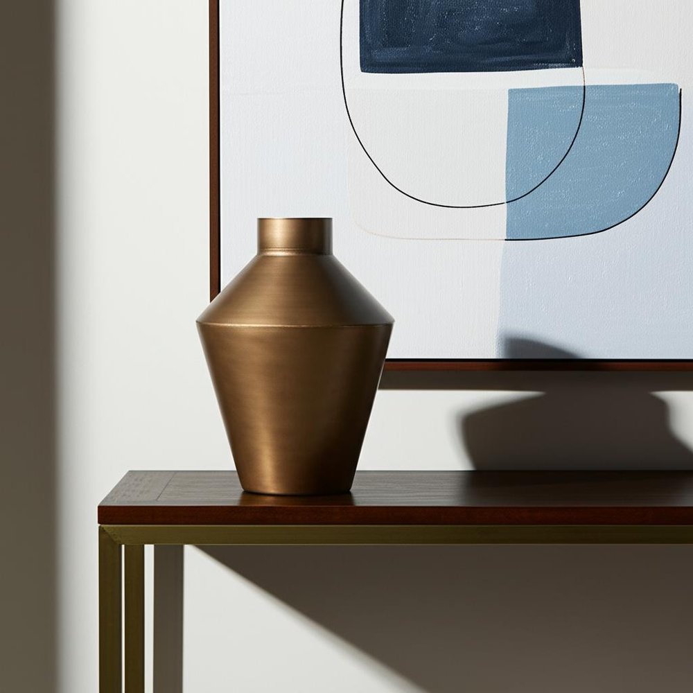 Ideal for displaying faux or dried flowers, it effortlessly elevates your home ambiance. This table vase features a striking trumpet shape that adds a touch of elegance to any space. Crafted from durable metal, it offers a modern yet rustic charm, thanks to its purposeful distressing. The unique distressed metal finish enhances its character and makes it a standout piece in your decor. Whether placed on a tabletop or used as a centerpiece, this vase complements various styles while bringing warmth and personality to your room. Showcase your favorite blooms in this beautiful vessel, and let it become a conversation starter among your guests. 12.00-inch h x 8.50-inch w x 8.50-inch d.