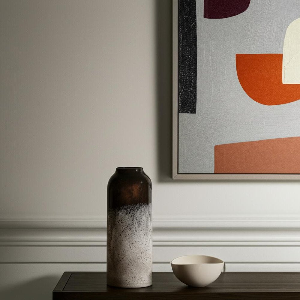 Ideal for displaying faux or dried flowers, it effortlessly elevates your home ambiance. This stunning table vase features a sleek and modern cylindrical shape, adding a contemporary touch to any decor style. Crafted from high-quality glass, it offers a textural color block tonal look that enhances the beauty of your floral arrangements. Its minimalist design makes it versatile enough to complement various settings, whether on a dining table, mantel, or shelf. Perfect for both casual and formal occasions, this vase serves as a beautiful centerpiece that draws attention without overwhelming your space. Make a statement in your home with this elegant and functional addition. 12.32-inch h x 5.12-inch w x 5.12-inch d.