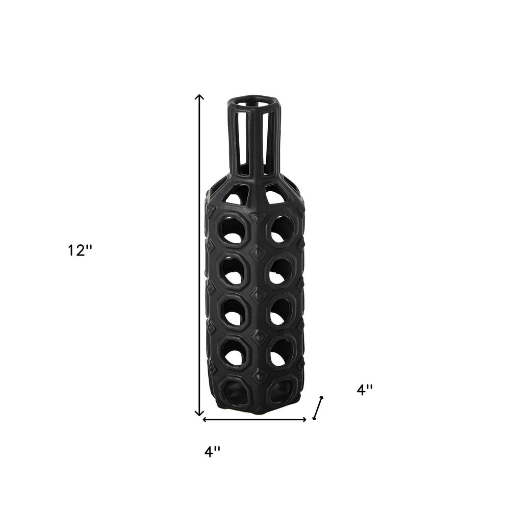 12" Black Ceramic Pierced Geometric Cylinder Table Vase