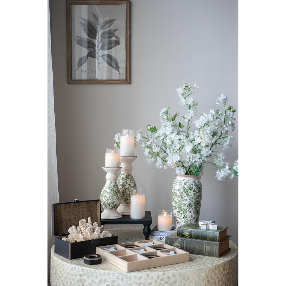12" Green and White Leaf Round Ceramic Table Vase With Does Not Apply
