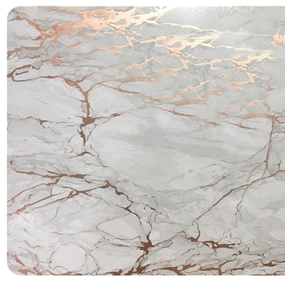Enhance your dining experience with the 12-inch x 18-inch gold and silver abstract agglomerated cork placemats. This set includes two beautifully designed rectangular placemats that combine elegance and functionality. Crafted from durable agglomerated cork, these placemats offer a stylish yet practical solution for protecting your table surfaces. The rich gold and silver hues add a touch of luxury to any dining setting. For maintenance, hand washing is recommended to keep them looking their best. These placemats not only complement your decor but also provide a soft, textured surface for serving meals. Elevate your table presentation and impress your guests with these exquisite placemats that bring sophistication to everyday dining occasions. 12-inch h x 18-inch w x 0.5-inch d.