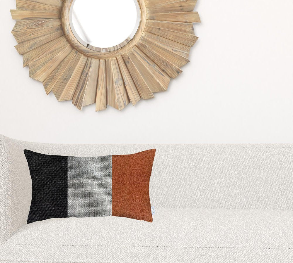 12" X 20" Black And Brown Geometric Zippered Handmade Polyester Lumbar Pillow Cover