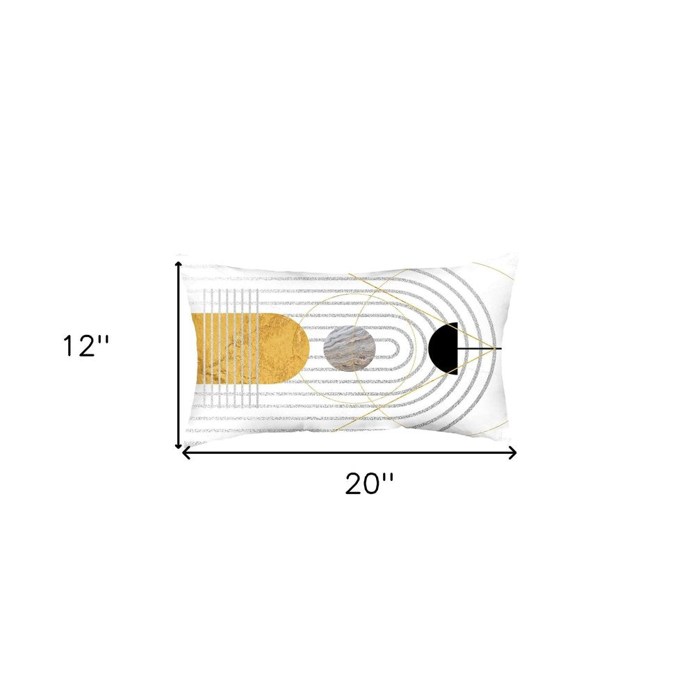 12" X 20" Black And Yellow Abstract Zippered Handmade Polyester Lumbar Pillow Cover