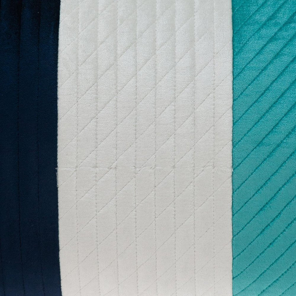 Crafted to perfection the Navy Blue and Sea Blue Quilted Colorblock Velvet Lumbar Throw Pillow will completely revitalize your personal space. The beautiful soft and fluffy velvet texture of the quilt workmanship is distinctly visible in it's vertical and diagonal lines, that deliver exquisite comfort. Easy cleaning of the cushion is offered in terms of a hidden zipper that is neatly concealed on the bold color background. Fall into complete pleasure with this three color toned throw pillow skillfully designed to complement your delicate decor space. 12" x 24" x 4"