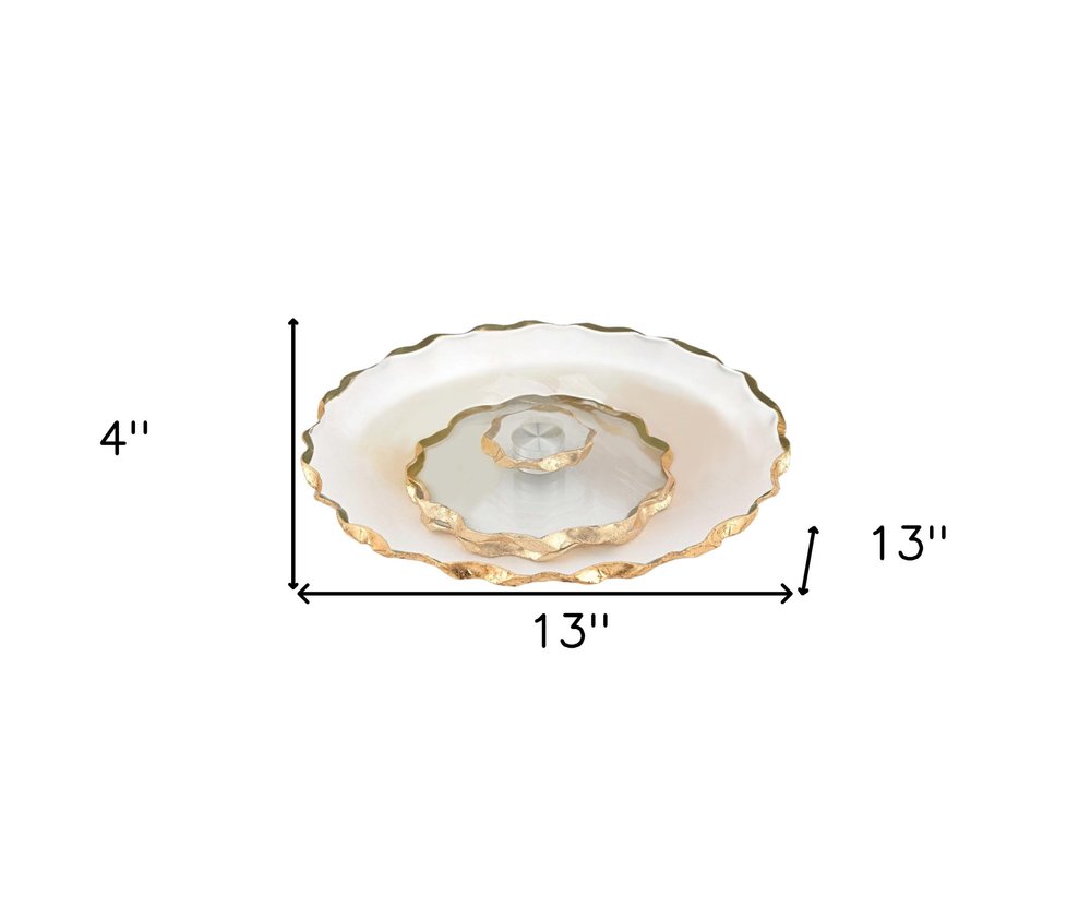 13" Clear and Gold Round Glass Hand Finished Lazy Susan