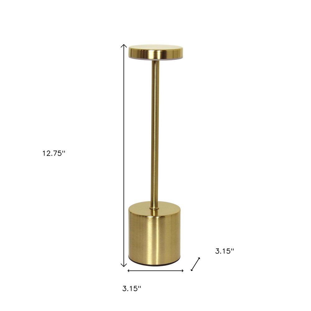 With this 13-inch gold metal table lamp you can bring in design to any space along with adding some ambient lighting. The base of this lamp is made of gold metal. This standard table lamp is designed to provide general lighting to the area. Integrated led technology is energy efficient and gives this lamp a cool and modern look high quality design makes this a great lamp for not only lighting, but accenting a room with style. It is perfect for virtually any decor. 12.75-inch h x 3.15-inch w x 3.15-inch d.