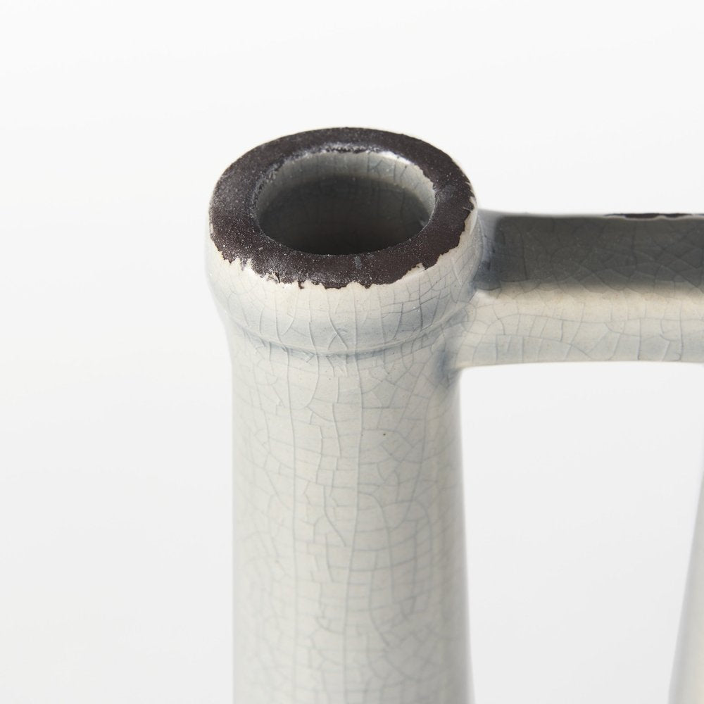 Elevate your space with this elegant 13-inch gray and white ceramic vase, featuring a sleek cylinder shape that adds a touch of modern sophistication. Crafted from high-quality ceramic, this vase exudes a contemporary charm that effortlessly complements any decor style. The unique urns and jars design of this piece brings a stylish twist to your home accessories collection. The neutral gray and white hues create a versatile color palette that blends seamlessly with various color schemes, making it a versatile accent piece for your living room, bedroom, or entryway. Add fresh or artificial flowers to this vase to bring a pop of color and nature indoors, creating a serene and inviting atmosphere in your space. 12.6-inch h x 5.5-inch w x 5.5-inch d.