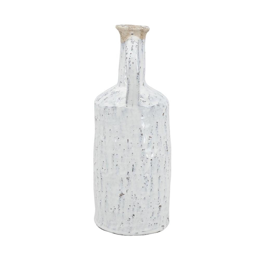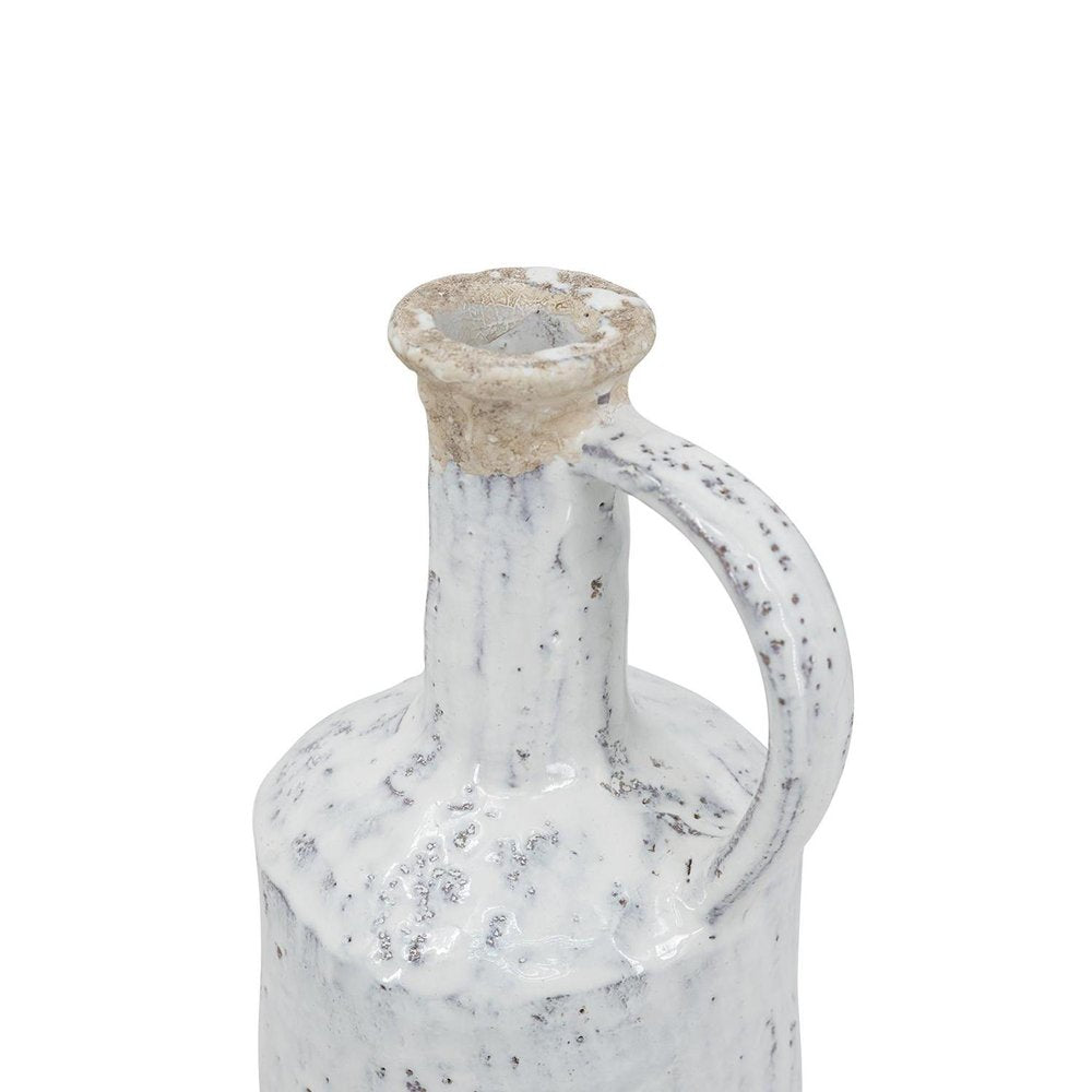 Add a touch of elegance to your space with this 13-inch jug vase crafted from terracotta in a round shape. Featuring a beautiful ivory color and hand-painted details, this transitional style vase brings a sense of warmth and character to any room. The purposeful distressing with a coat/paint technique adds a unique charm, making it a perfect accent piece for your home decor. 12.8-inch h x 5.3-inch w x 4.9-inch d.