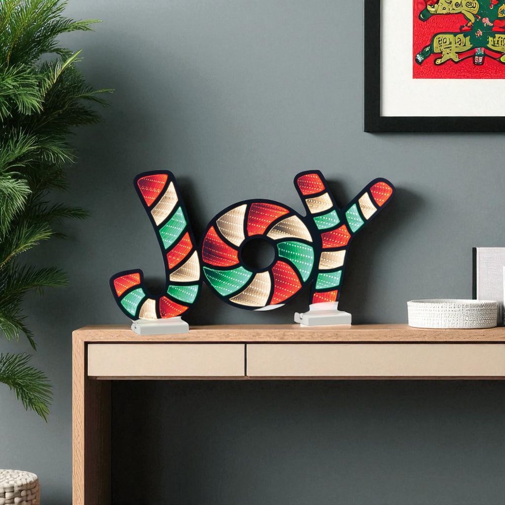 Set a festive christmas mood with this 13-inch red green and white acrylic christmas tabletop sign with led. Led light provides an illuminating effect that adds to the decorative appeal of this special piece. It's a perfect addition for those who love an up-to-the-minute look and feel. 13.00-inch h x 25.50-inch w x 3.00-inch d.