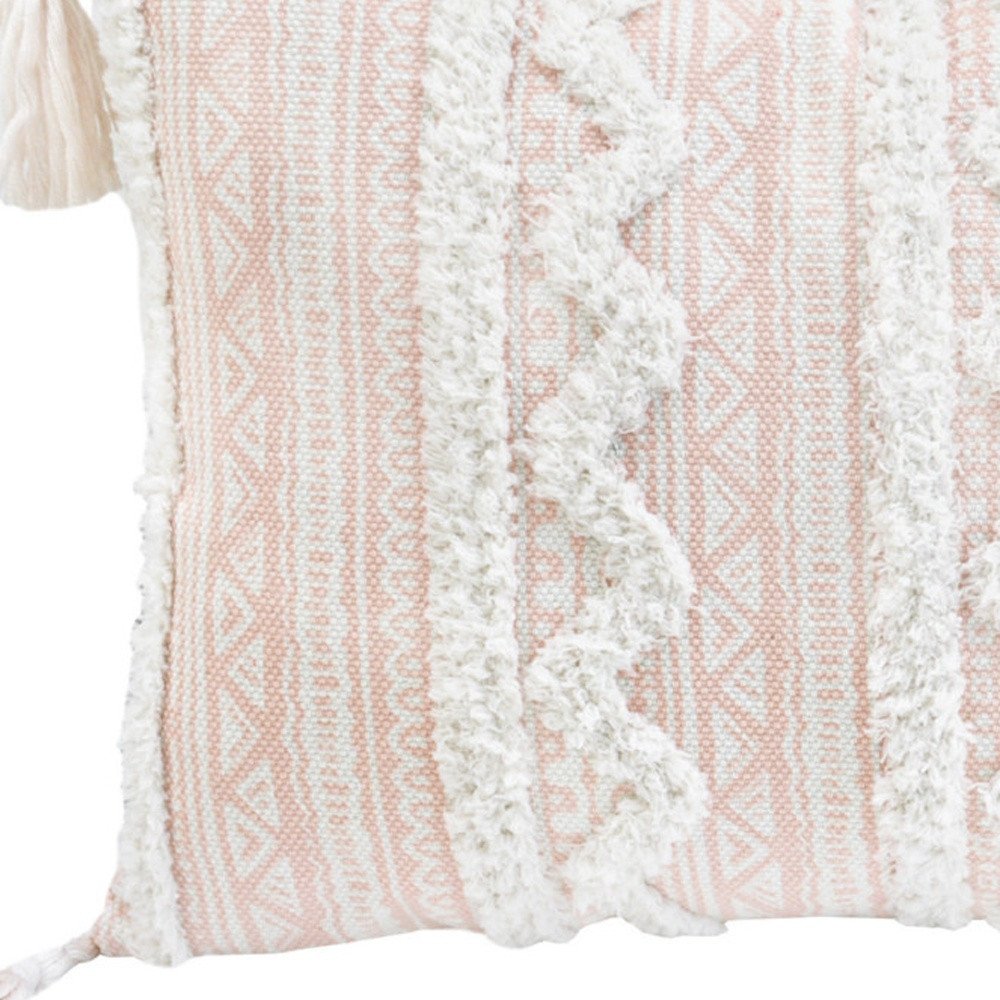 13" X 18" Beige Throw Pillow with Tassels
