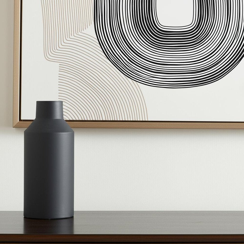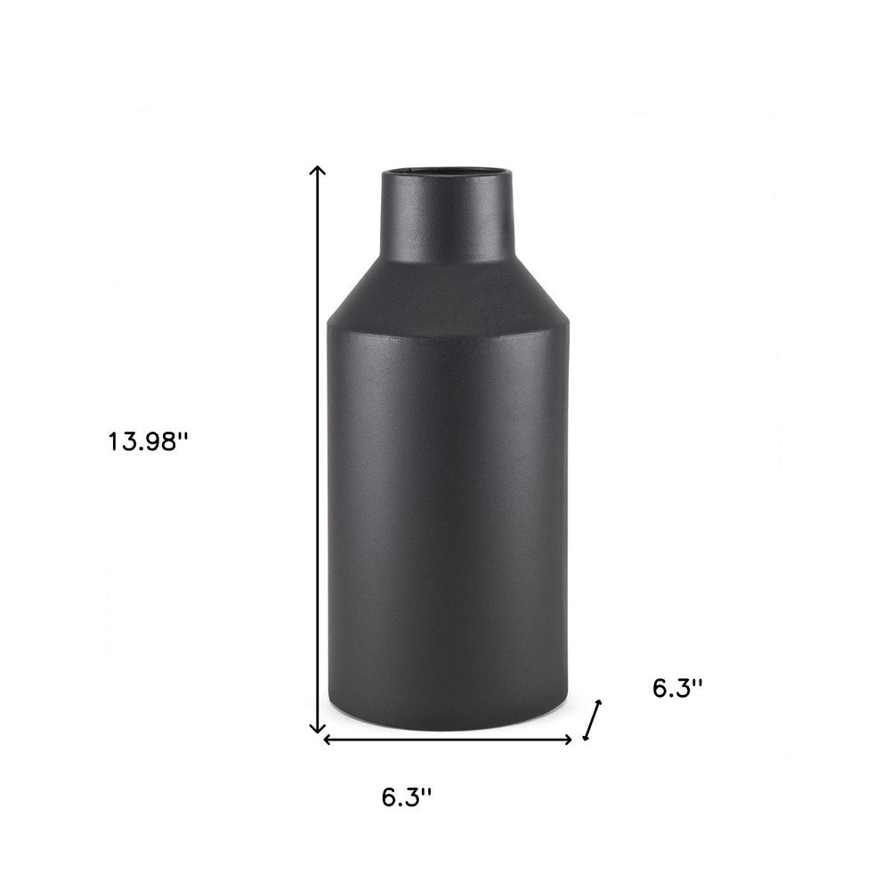 The 14-inch black metal table vase is a stunning centerpiece that elevates your home decor. Its shape adds a touch of elegance, while the sleek metal construction ensures durability and style. This modern vase seamlessly complements a variety of interior designs, making it a versatile choice for any room. Perfect for displaying fresh flowers or as a standalone decorative piece, it brings an artistic flair to your table setting. The striking black finish adds sophistication and can easily blend with or enhance other decor elements in your space. Create an inviting atmosphere in your home with this eye-catching table vase that embodies both beauty and functionality. 13.98-inch h x 6.3-inch w x 6.3-inch d.