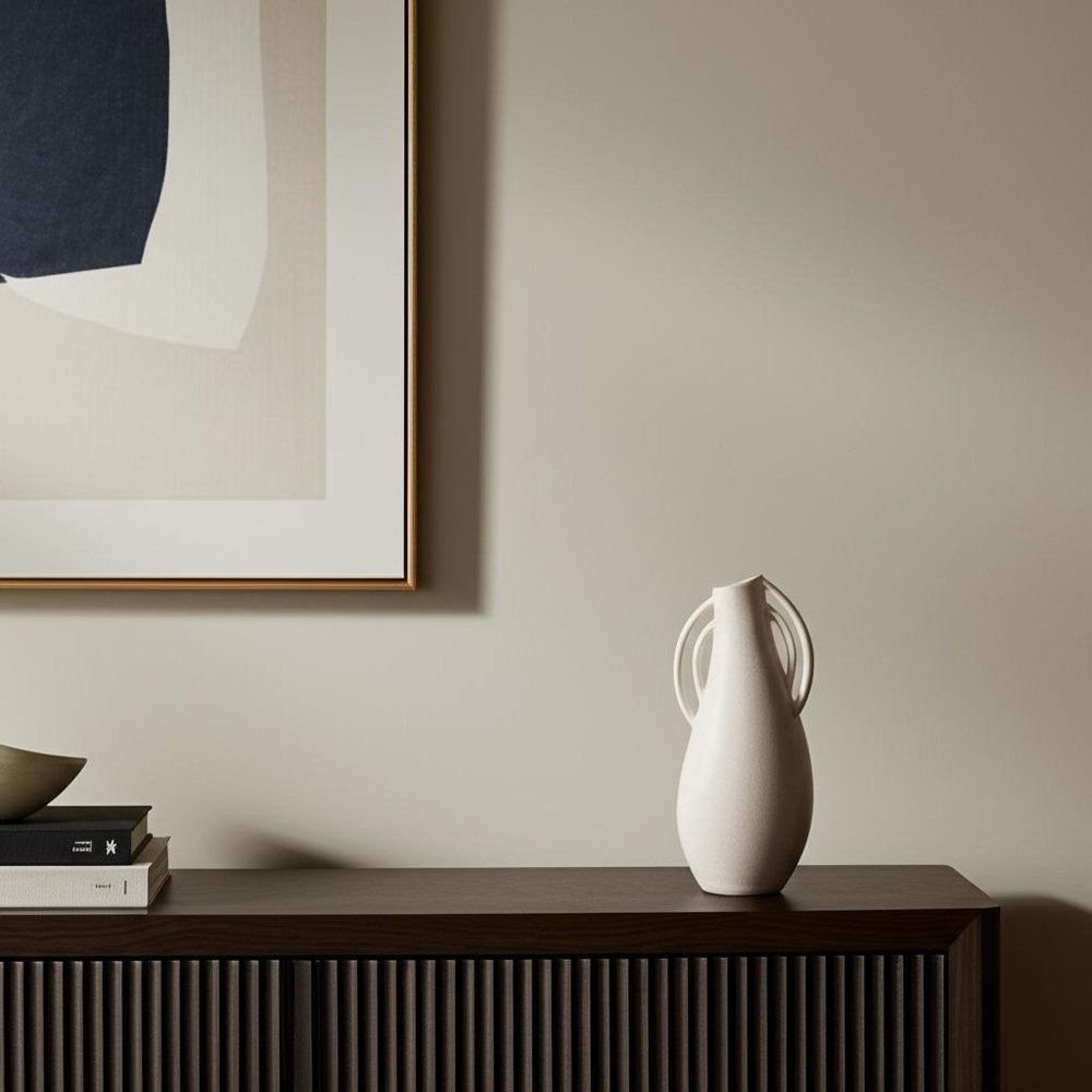 14" Off White Speckle Ceramic Amphora Table Vase