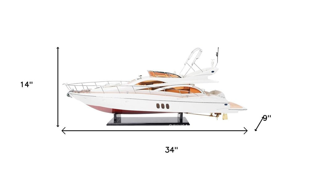 Add an air of fashion to your room and rejuvenate the space with this 14-inch unfinished wood hand painted model boat. This replica makes a great tabletop accent for your coffee table, desk, bookshelf, dresser or mantle. A perfect decorative addition for anyone who loves nostalgia and vintage style models and replicas. Great to use on its own or mix with other decorations for the perfect look. 14-inch h x 34-inch w x 9-inch d.