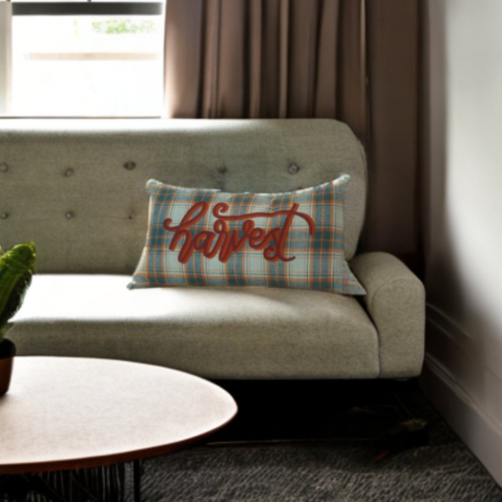 Bring a warm and festive fall feeling to your space with this cozy 14-inch x 14-inch blue and orange thanksgiving wool blend pillow with embroidery edges. Durable blue and orange wool blend has been used to give this pillow a beautiful look that will stand the test of time. Super soft and built to hold its shape, this polyester pillow is a great option. Emblazoned with the text harvest this pillow adds some visual interest and decor to your space. For anyone that loves to decorate or accent their space with color and texture. A great decorative accessory for your favorite chair, to accent your sofa, or to use as part of your bed ensemble. 14-inch H x 14-inch W x 6.25-inch D