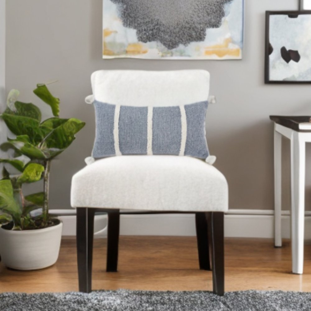 14" X 14" Blue and White Cotton Pillow With Tassels Edges