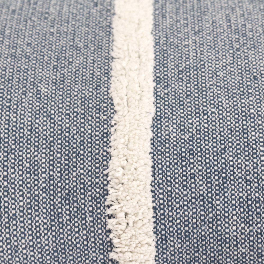 This 14-inch x 14-inch blue and white cotton pillow with tassels edges will add a beautiful decorative accent to your decor. Soft and textural blue and white 100% cotton has been used to make this pillow look and feel like a real treasure. Fun and decorative tassels add some high end and hand-crafted textural designer touches. This soft polyester pillow not only is decorative but made to be comfy and cozy all day long. For anyone that loves to decorate or accent their space with color and texture. Decorative pillows are a great way to change up the look and feel of your space easily and quickly. 14-inch H x 14-inch W x 6.25-inch D
