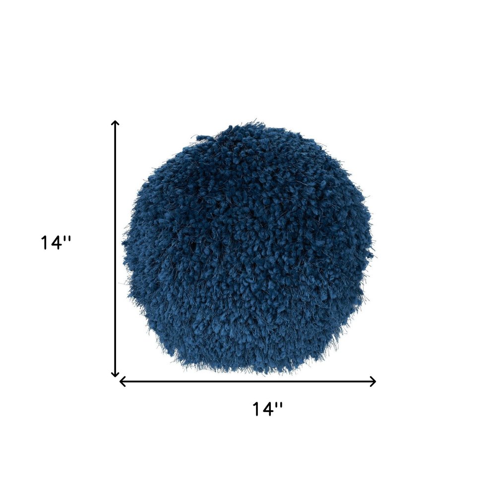 14" X 14" Teal Blue Round Shag Throw Pillow