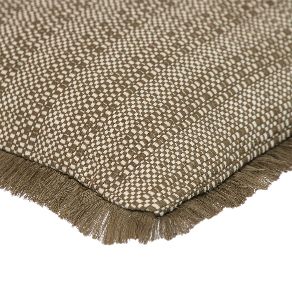 14" X 20" Green and White Cotton Lumbar Throw Pillow with Fringe