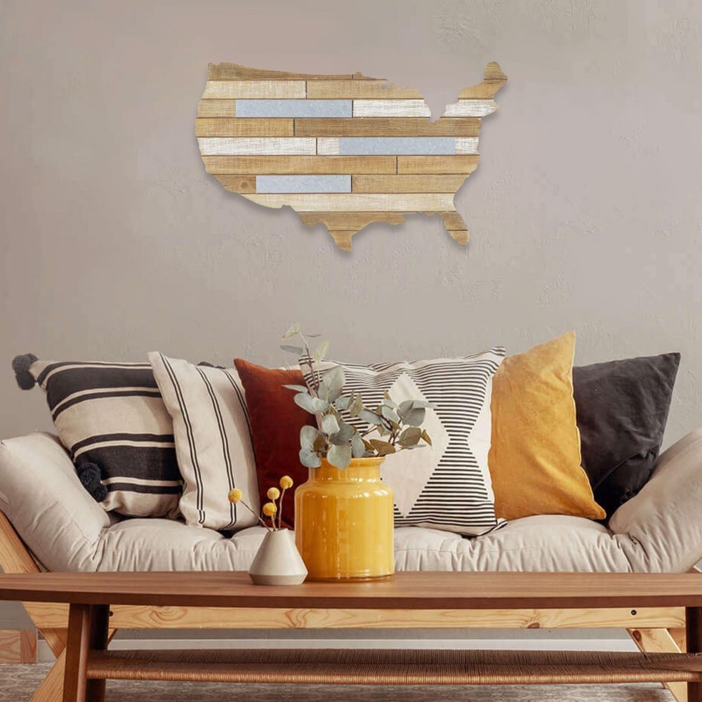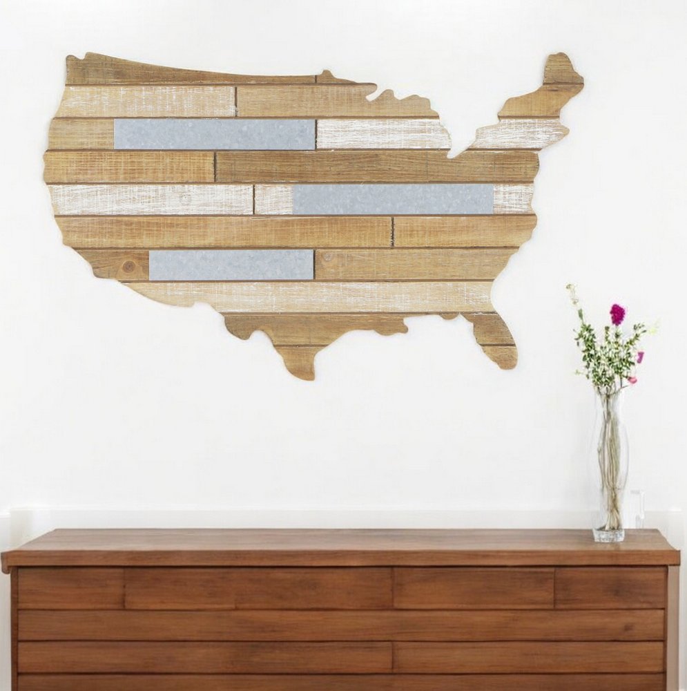 Unique and decorative, this 14-inch x 24-inch brown and gray wood and metal hanging dimensional sculpture will leave a lasting impression. Handmade with care, this piece brings some authenticity to your space. With materials and a finish that is purposefully distressed, this hanging wall decor will instantly liven things up and bring color and dimension to your walls. 14-inch H x 23.5-inch W x 1.25-inch D