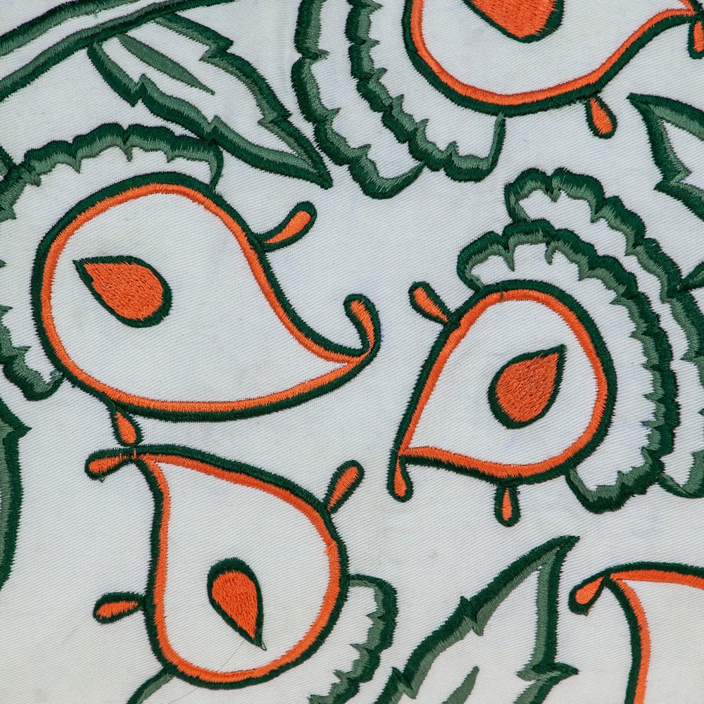 14" X 24" Green and White Cotton Lumbar Throw Pillow with Embroidery