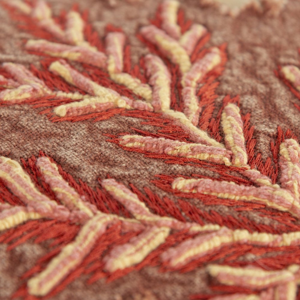 14" X 26" Beige and Brown Autumn Leaves Throw Pillow With Applique And Embroidery