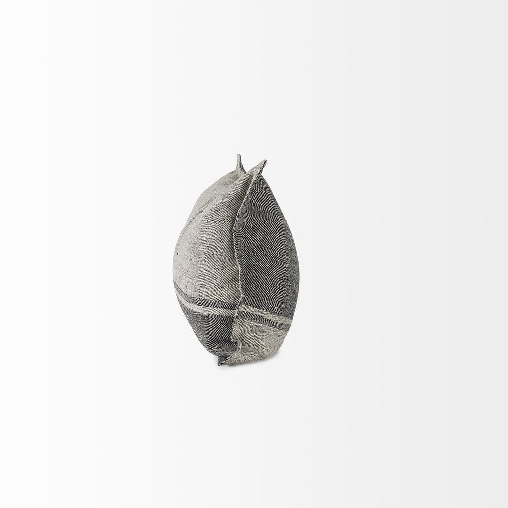 Bring a bit of fashion and zip to your space with this eye-catching and comfy 14-inch x 26-inch dark gray and light gray striped linen lumbar throw pillow cover. This color blocked stripe patterned cover is made from high grade linen that is durable and long lasting. Decorative pillow covers are a great way to change up the look and feel of your space easily and quickly. Combine with your own fill or insert to add decoration and dimension to your favorite chair, accent your sofa, or to use as part of your bed ensemble. 14-inch h x 26-inch w x 1-inch d.