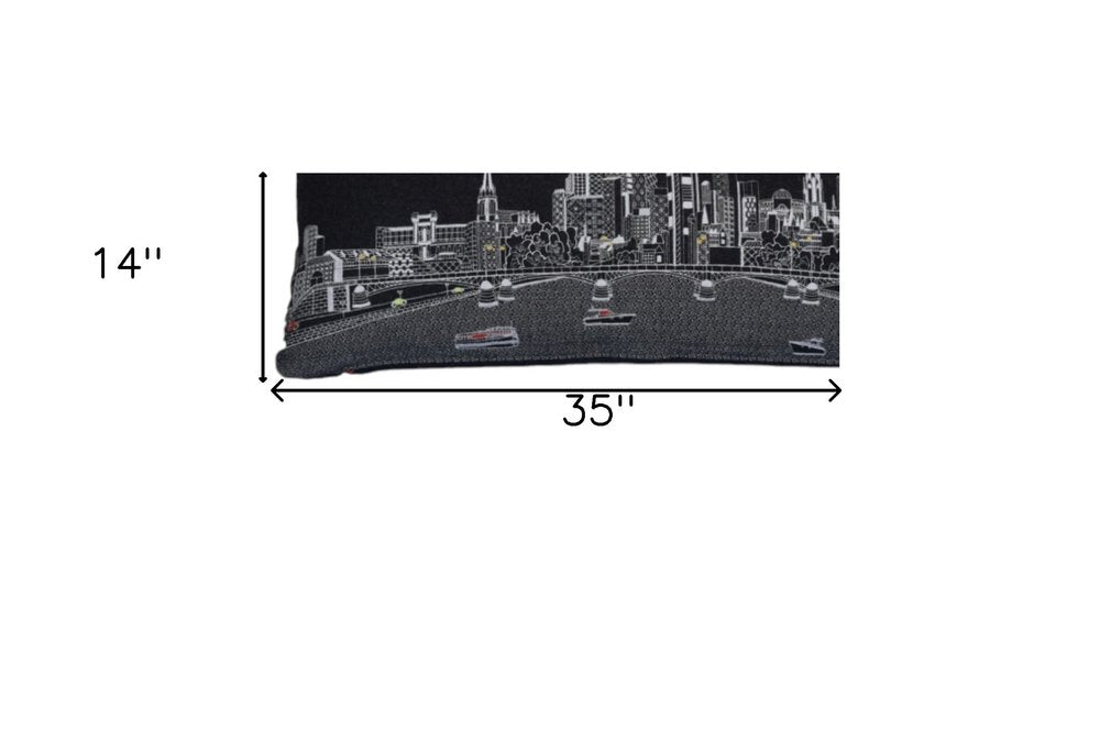 14" X 35" Black Gray and White Hometown Pride Wool Lumbar Throw Pillow