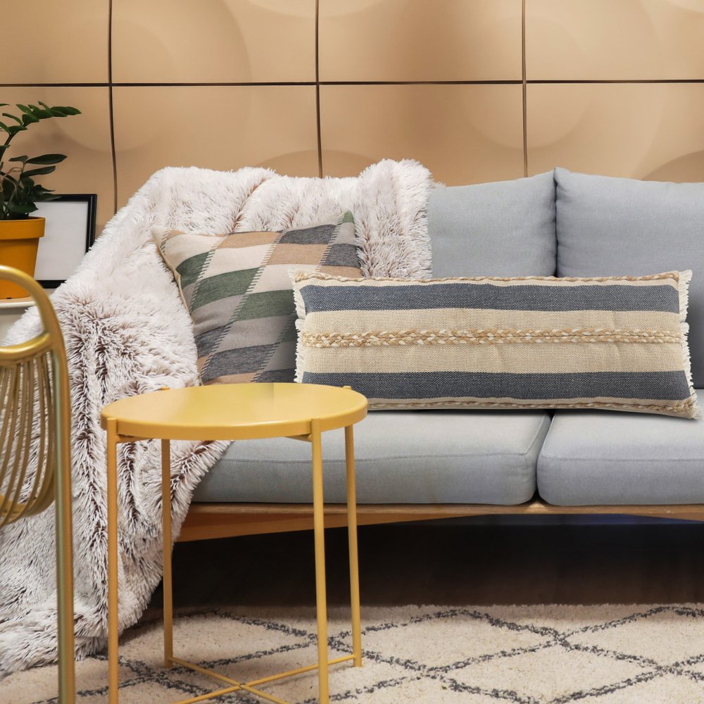 Bring a bit of fashion and zip to your space with this eye-catching and comfy 14-inch x 36-inch beige and blue lumbar beach striped cotton blend throw pillow cover. This beige and blue colored decorative pillow cover is made from high grade cotton blend that is durable and long lasting. Decorative pillow covers are a great way to change up the look and feel of your space easily and quickly. Combine with your own fill or insert to add decoration and dimension to your favorite chair, accent your sofa, or to use as part of your bed ensemble. 14.00-inch h x 36.00-inch w x 0.25-inch d.