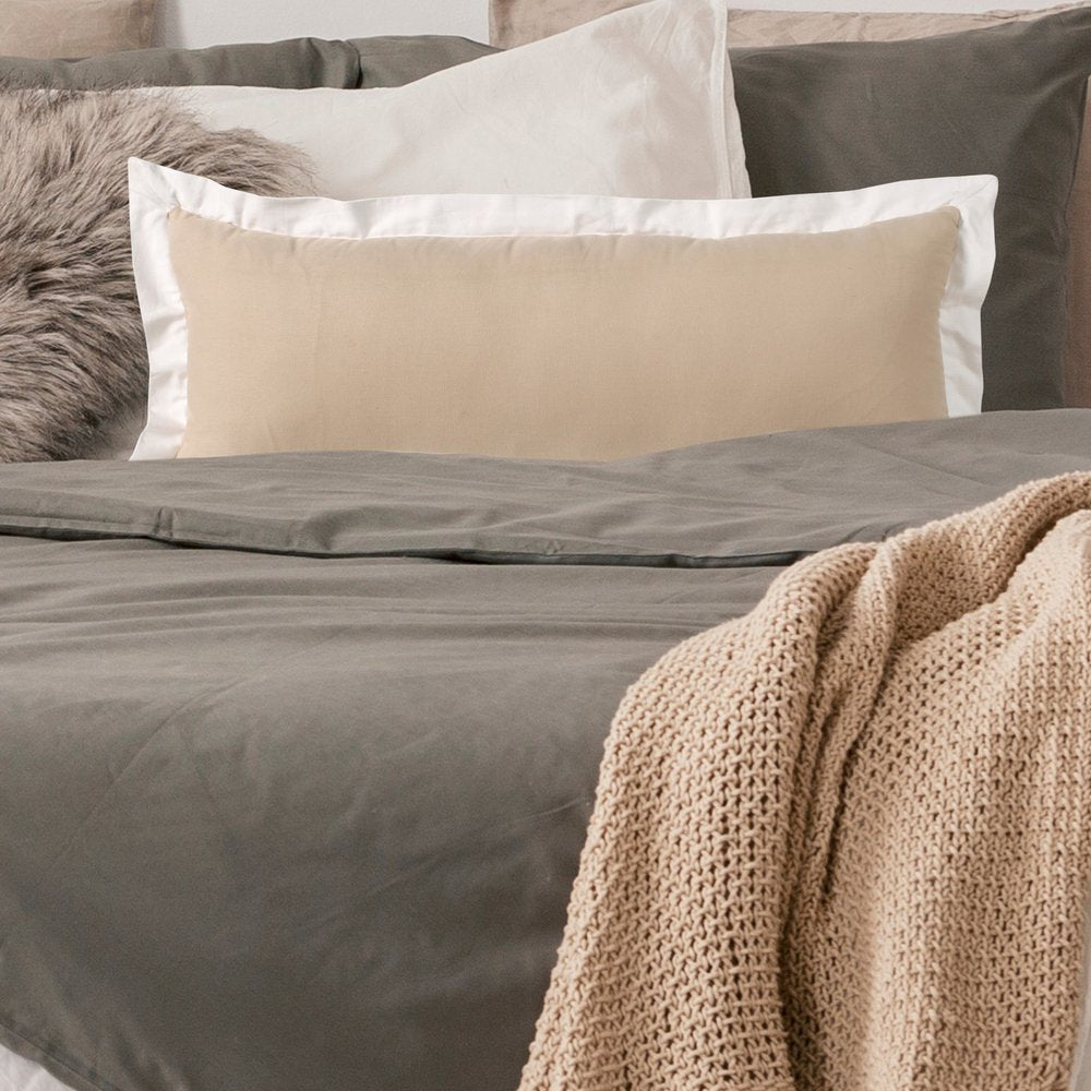 14" X 36" Beige And White Lumbar Color Block Cotton Throw Pillow Cover