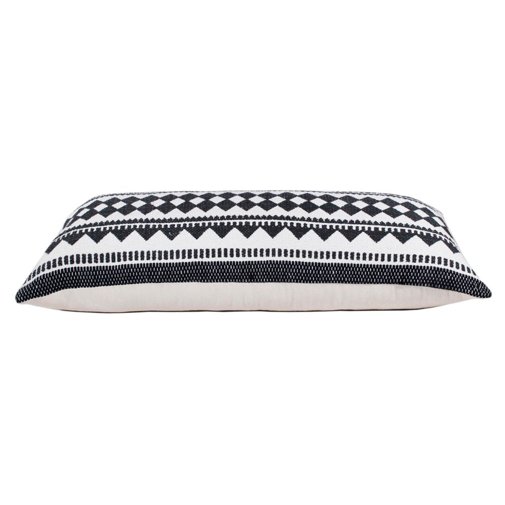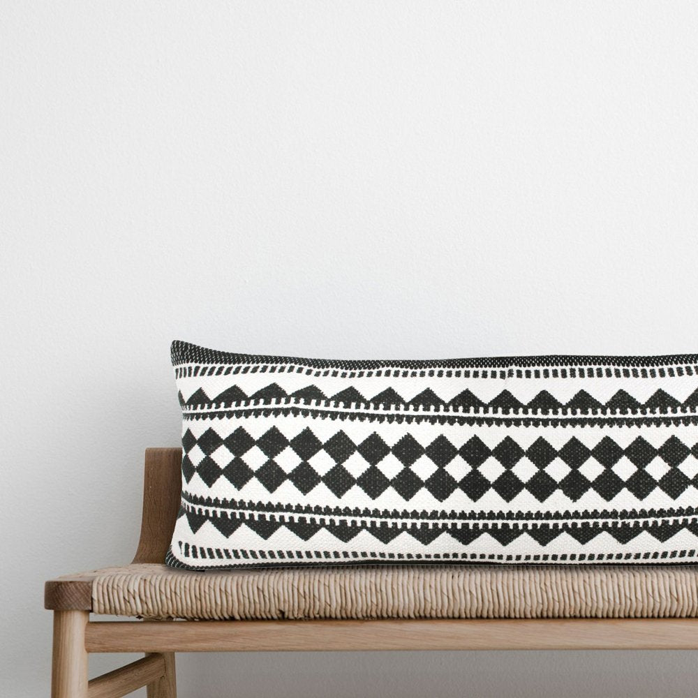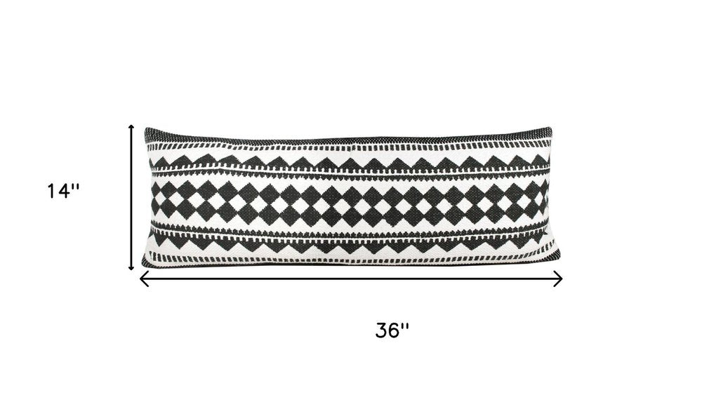 14" X 36" Black And White Lumbar Geometric Cotton Blend Throw Pillow Cover