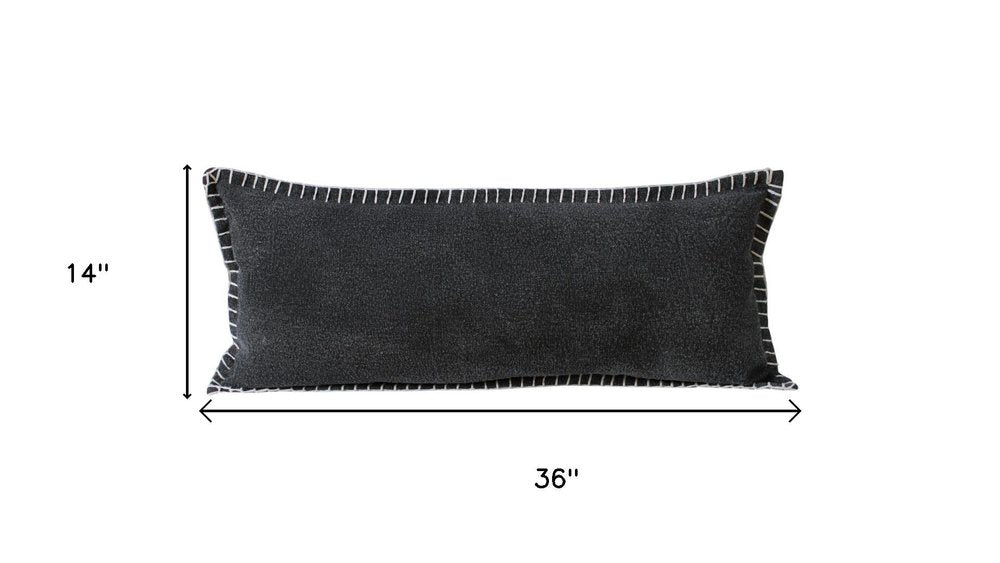 14" X 36" Black Lumbar Cotton Throw Pillow Cover