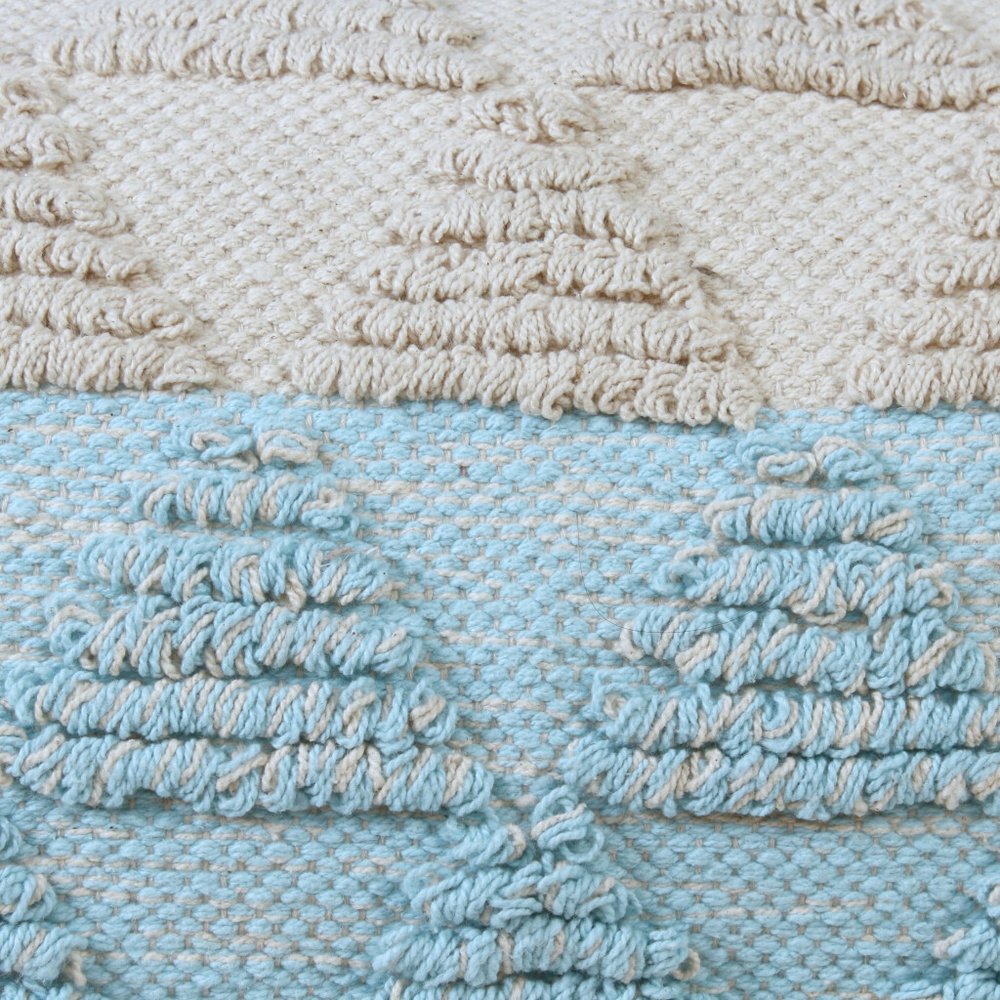 This 14-inch x 36-inch blue and white lumbar geometric cotton throw pillow cover will add a beautiful decorative accent to your decor. The blue and white coloring of the extremely durable and long lasting cotton pillow cover will add dimension and texture to your space. Decorative pillow covers are a great way to change up the look and feel of your space easily and quickly. Combine with your own fill or insert to add decoration and dimension to your favorite chair, accent your sofa, or to use as part of your bed ensemble. 14.00-inch h x 36.00-inch w x 0.50-inch d.