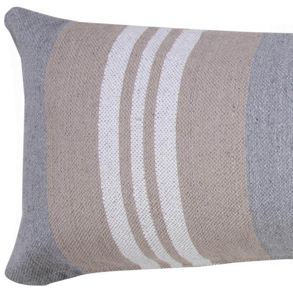 14" X 36" Gray And Beige Lumbar Striped Cotton Throw Pillow Cover