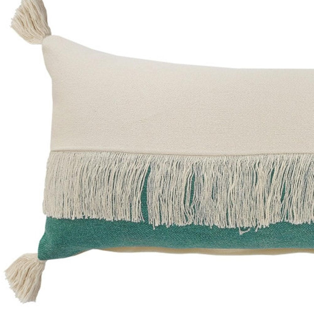 14" X 36" Green And Ivory Lumbar Beach Striped Cotton Throw Pillow Cover