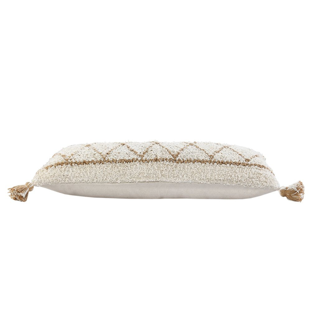 This 14-inch x 36-inch ivory and beige lumbar geometric cotton blend throw pillow cover will add a beautiful decorative accent to your decor. The ivory and beige coloring of the extremely durable and long lasting cotton blend pillow cover will add dimension and texture to your space. Pillow covers are a good idea for anyone that loves to decorate or accent their space with color and texture. Combine with your own fill or insert to add decoration and dimension to your favorite chair, accent your sofa, or to use as part of your bed ensemble. 14.00-inch h x 36.00-inch w x 0.25-inch d.