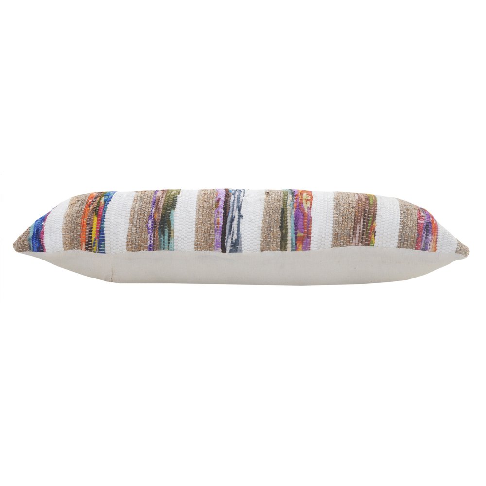 This 14-inch x 36-inch tan white and purple lumbar geometric cotton blend throw pillow cover will add a beautiful decorative accent to your decor. Durable tan, white, and purple cotton blend has been used to give this pillow cover a beautiful look that will stand the test of time. Pillow covers are a good idea for anyone that loves to decorate or accent their space with color and texture. Combine with your own fill or insert to add decoration and dimension to your favorite chair, accent your sofa, or to use as part of your bed ensemble. 14.00-inch h x 36.00-inch w x 0.50-inch d.